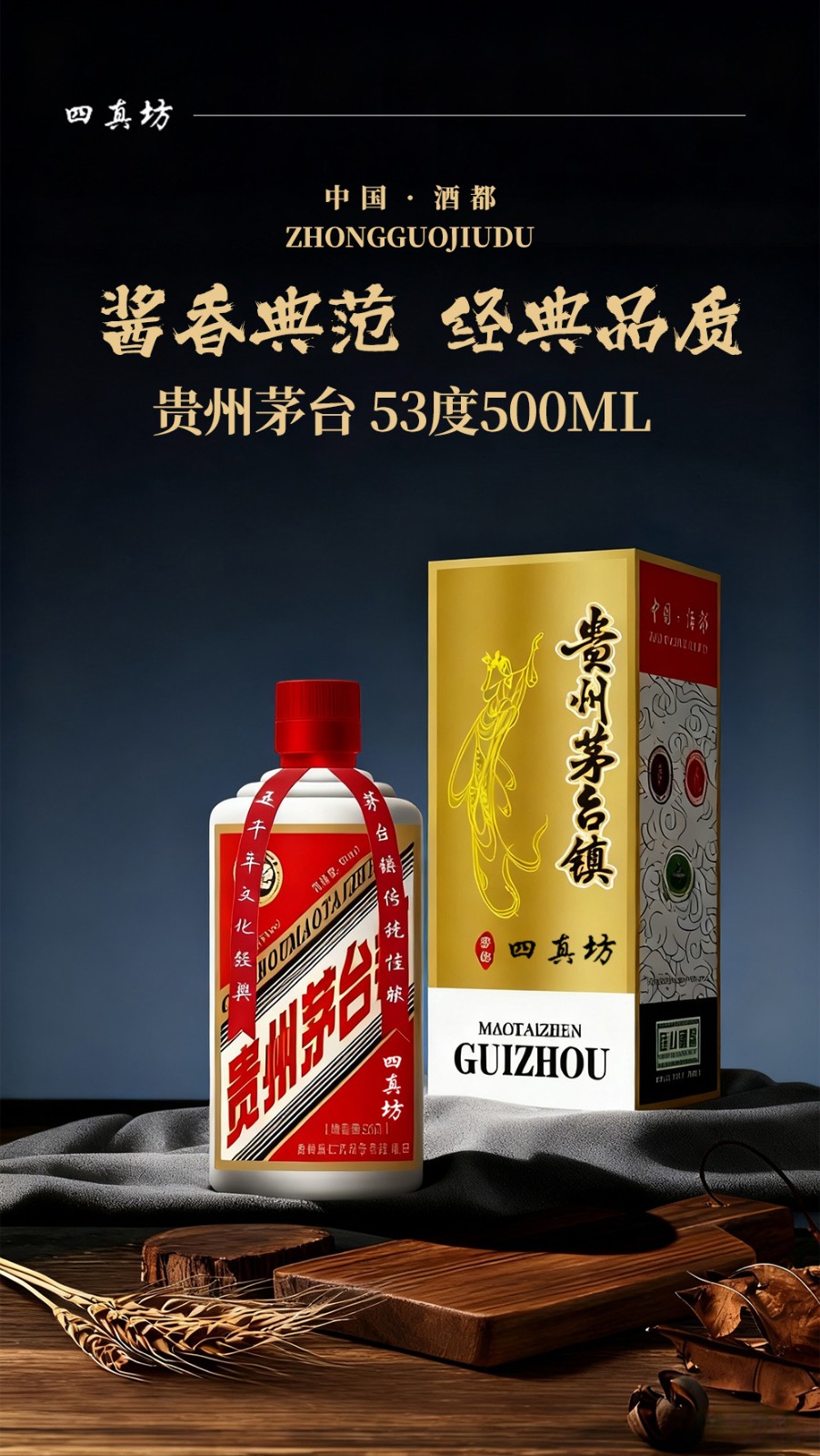 贵州茅台镇(四真坊)酱香型白酒500ml/瓶